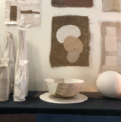 Matière. Cette baladeuse est constituée de pièces de tissus recyclés et chinés, encollées avec de la colle de riz biologique préparée par l’artisane.